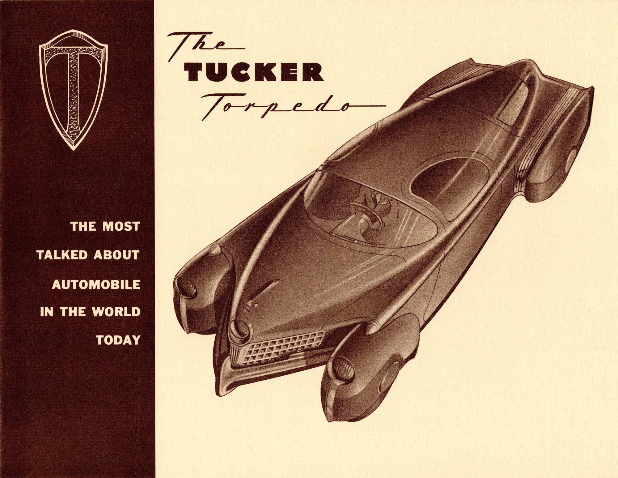 Třípohledová dvoustrana nejznámějšího prospektu Tuckeru sděluje vše podstatné, nezapomíná na pokrok a věštbu budoucnosti motorismu – to vše zabalené do lichotek těm, kteří se rozhodnou novinku si dopřát. Jen se trošku nabízí otázka, proč Preston nezvolil plnobarevné provedení tisku, které bylo tou dobou naprosto běžné.