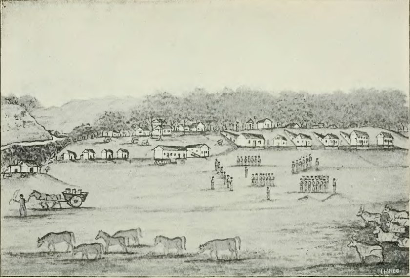Fort Dodge v roce 1852 na ilustraci od Williama Williamse (Wikipedia.org)